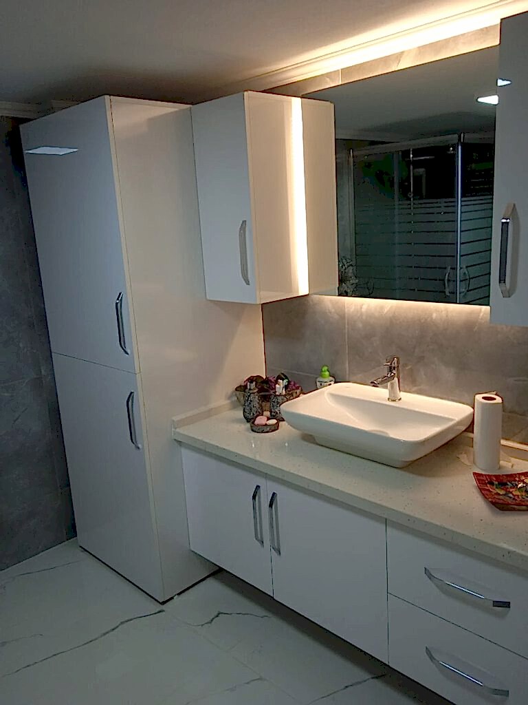 Azerbaycan'da farklı tarzda banyo dolapları mevcuttur: Kantri, modern, lavabo, çamaşırlık, makinalı ve aynalı modeller.